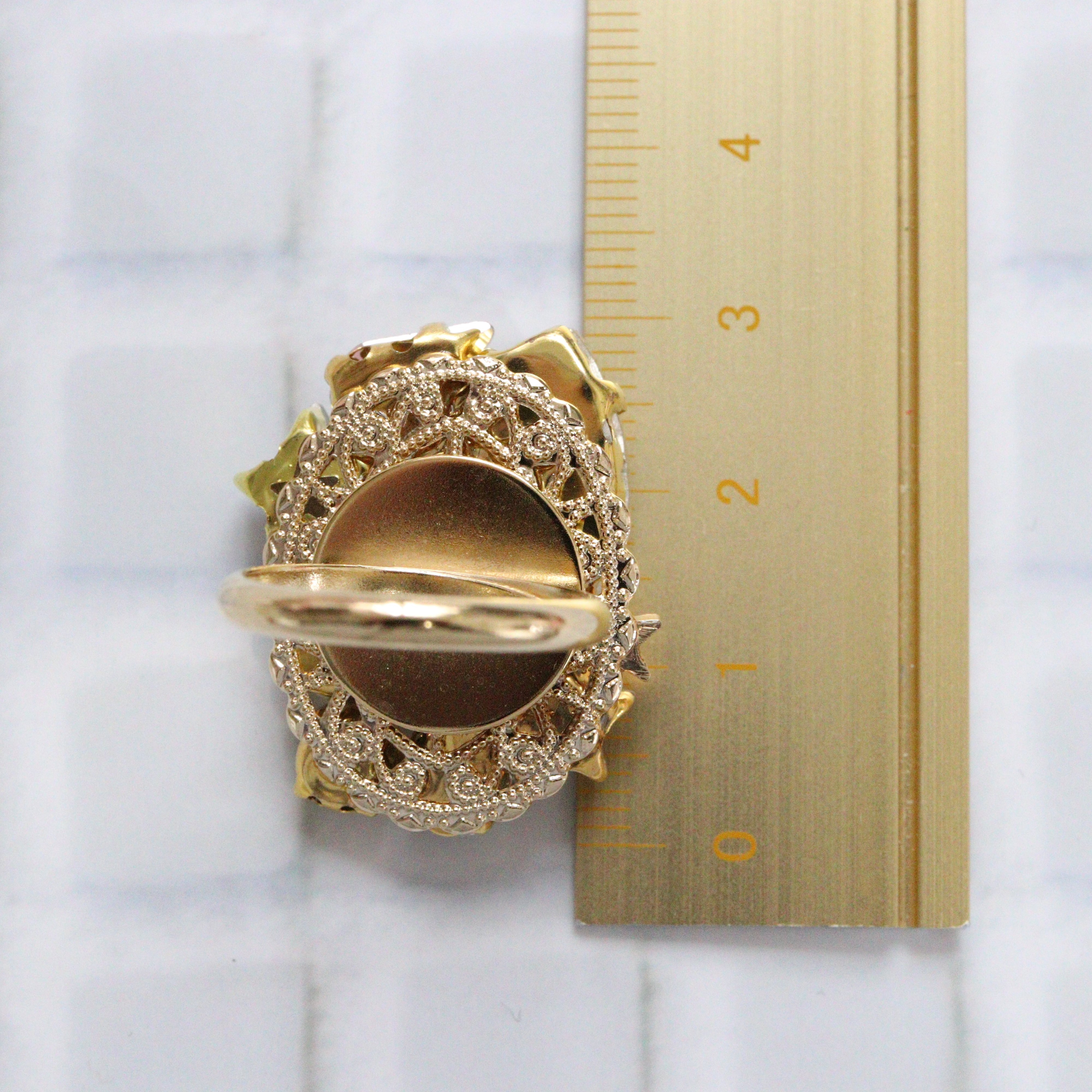 近くで見ると擦れたような痕が見える場合がありますが、身につけた時に美しく輝くことを優先し、良品と判断しています。