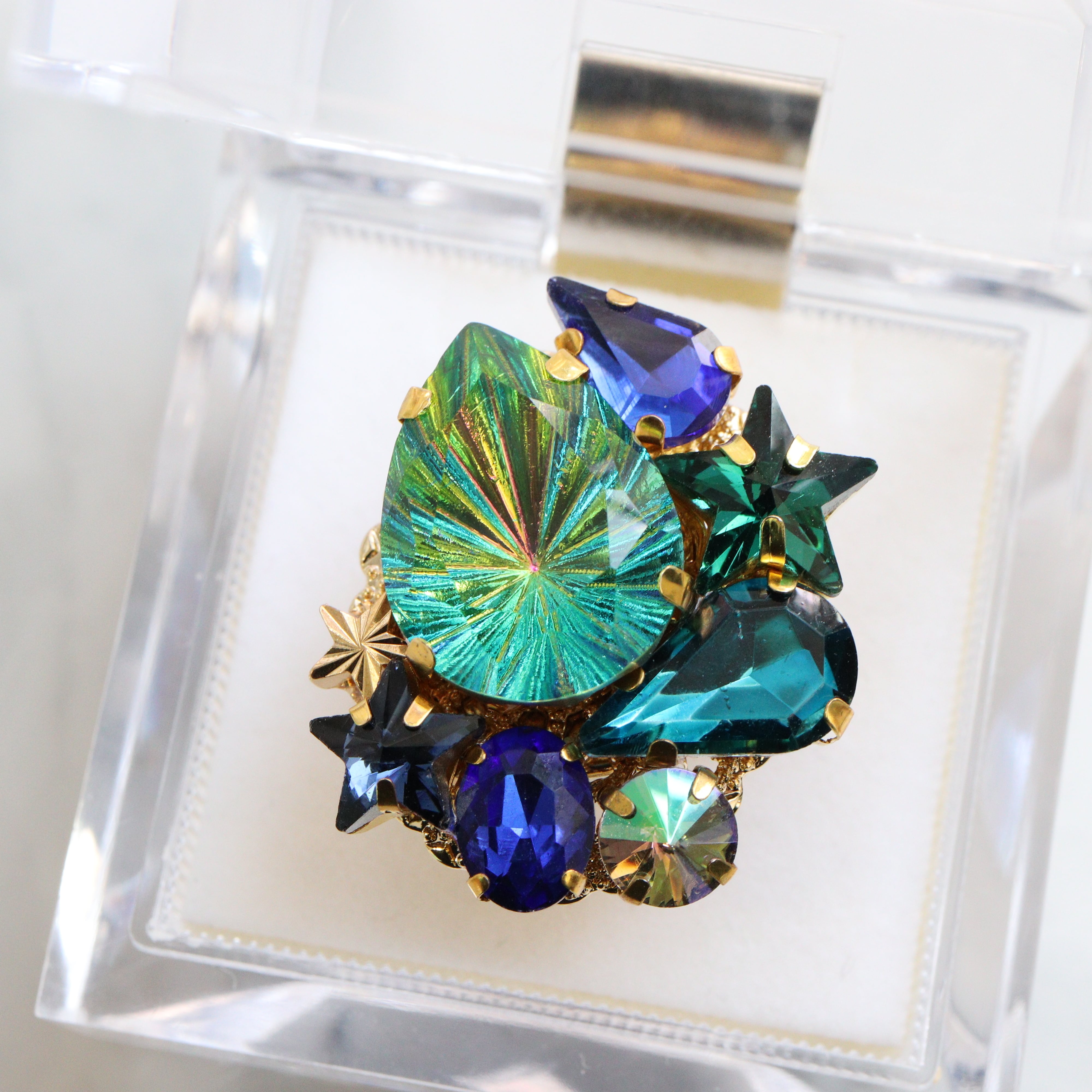 オーロラ加工されたビジューはオーロラの反射で擦れたような痕が見える場合があります。