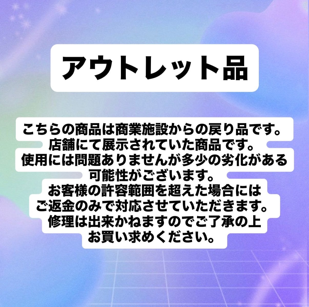 修理は出来かねますのでご了承の上お買い求めください。